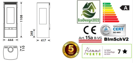 The Strauss PURE model is elegant, fits anywhere, has a reduced width and a large window through which the flame is clearly visible. It is available in anthracite gray. Its power can be adjusted from a maximum of 8.8 kW to a minimum of 4.2 kW. It complies with the current Ecodesign 2023 standards, has an energy efficiency class of A++, the highest in the category, and a first-class efficiency of 91.5% at maximum power and 96.2% at minimum power. Its hot air blower can be adjusted manually or automatically in 5 different levels. Thanks to a balanced and soundproof motor, it is very quiet. This blower can also be completely disabled. The STRAUSS PURE model offers four operating/control modes to choose from: Manual mode: You start and switch off the oven yourself and regulate the ventilation output from 1 to 5 to the desired level. Temperature mode: You select a temperature of your choice and the oven starts automatically when the temperature in the room falls below the desired temperature. It stops automatically when the room temperature exceeds the desired temperature by approximately 1.5°C, and so on for the stop and start phases. Week mode: identical to temperature mode, but with the addition of the ability to select days and times on the seven days of the week for fully automatic operation. Thermostat mode: identical to Temperature and Weekly mode, but this time the oven must be controlled with an optional wireless thermostat module that you can place in a convenient location in the home for more precise temperature control. The oven comes with a remote control as standard and is also Wi-Fi compatible so it can be fully controlled via your smartphone. The fireplace is lined with refractory bricks for better efficiency, the ignition is very quick as it is equipped with a ceramic spark plug, the preheater