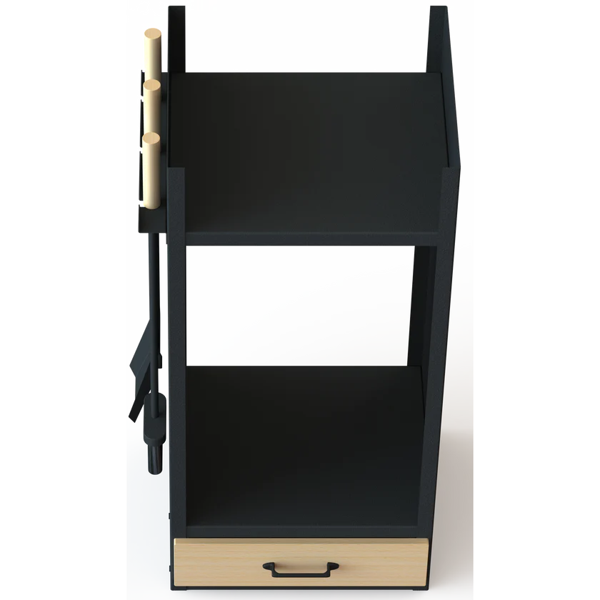 Wood rack, tools, and drawer – The complete kit
